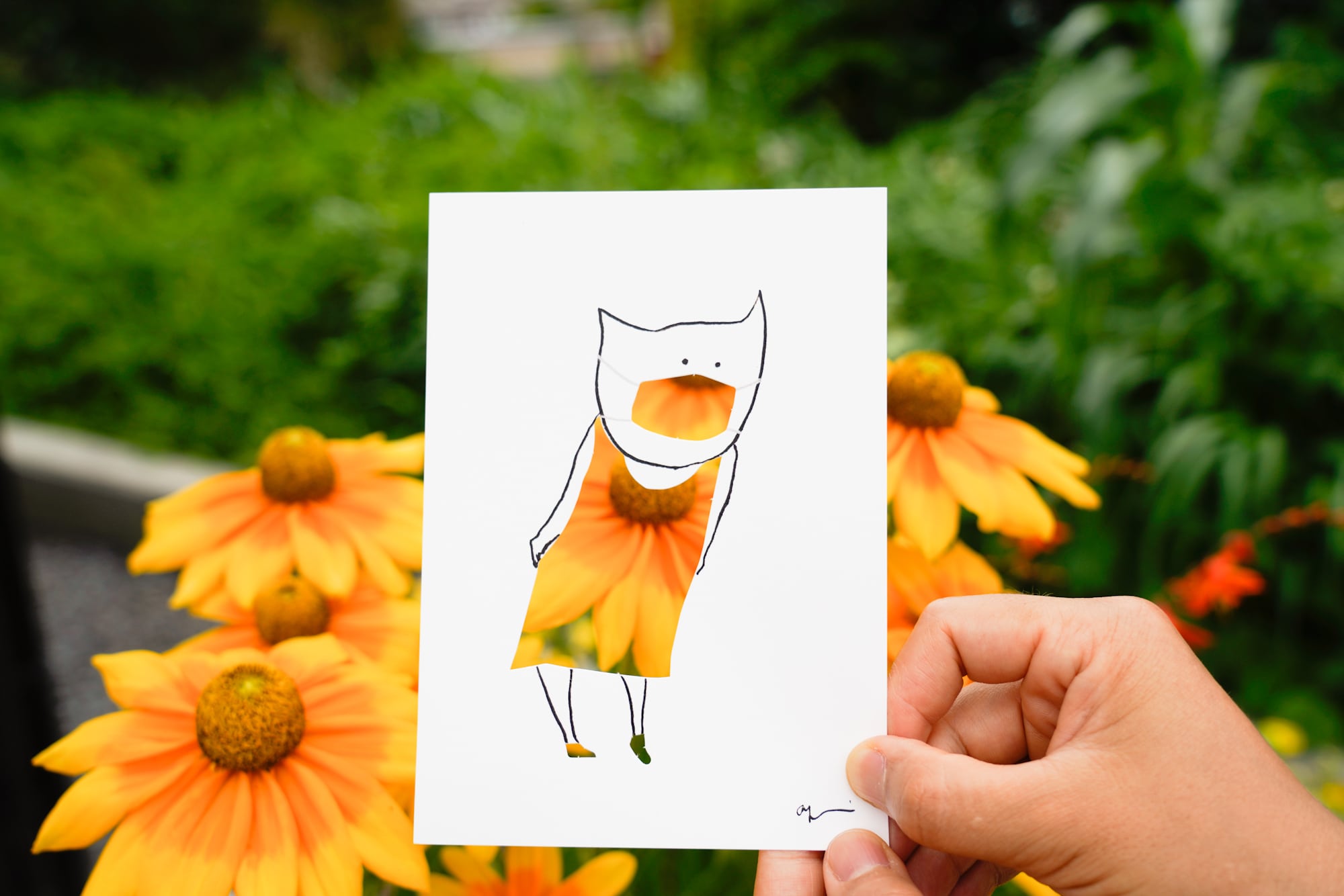 イタリア人のマスク姿を見ると、”コロナが夢だったらいいのに”という私の現実逃避はあえなく撃沈します。おパンツのように身に付けるのを忘れると問題あるものになってしまったマスクはもう洋服の一部なんだなと思い制作した作品をポストカードにしました。